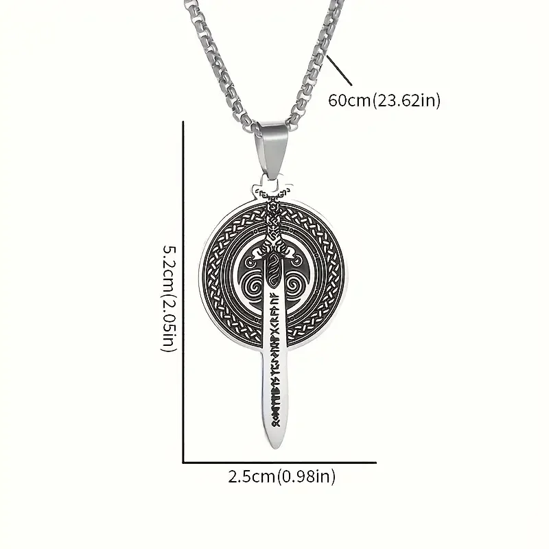 Το ξίφος συμβολίζει τη θέληση, την αποφασιστικότητα και την πνευματική προστασία. Η ασπίδα ενισχύει την άμυνα απέναντι σε αρνητικές ενέργειες και προσφέρει σταθερότητα. Οι ρούνοι φέρνουν σοφία, καθοδήγηση και ενίσχυση της προσωπικής δύναμης.