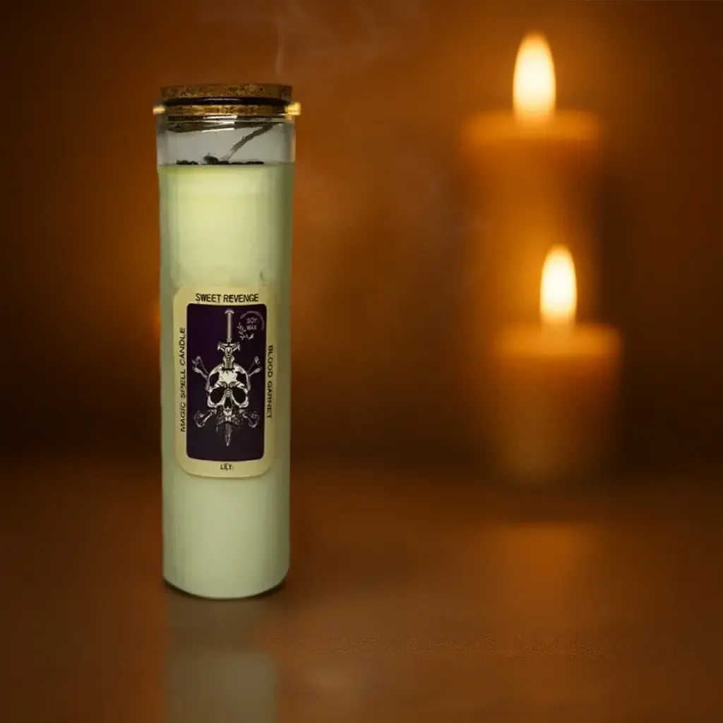 Αυτό το ιδιαίτερο και μοναδικό κερί, που ενισχύει τις μαγικές του ιδιότητές με λίθους από γρανάτη και έλαιο κρίνου, αποτελεί το κερί της Γλυκιάς Εκδίκησης.